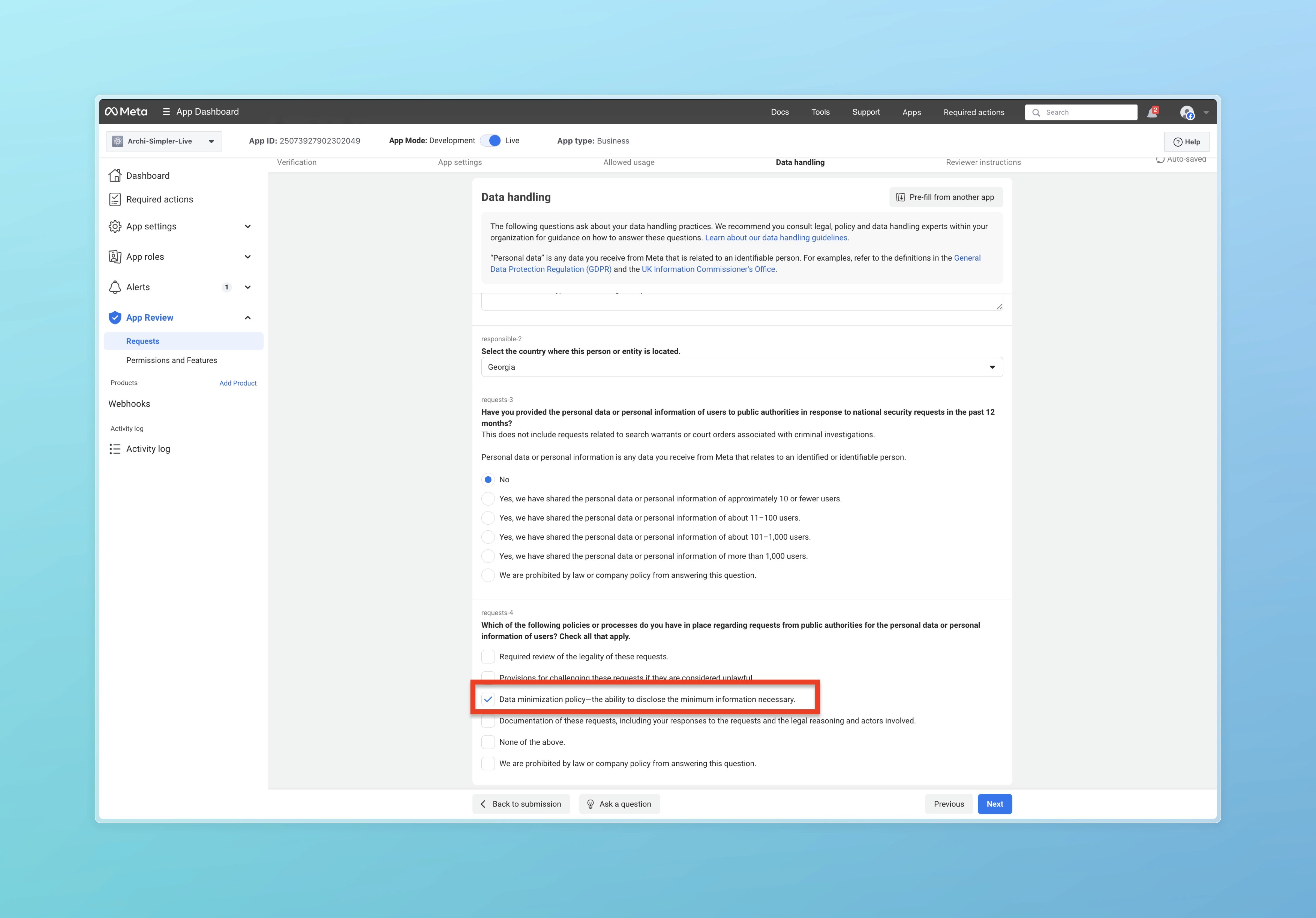 After this, select Data minimization policy—the ability to disclose the minimum information necessary and click the Next button.